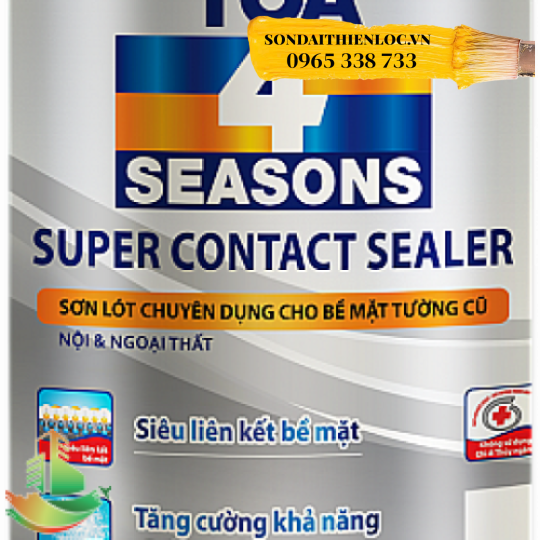 Sơn lót gốc dầu TOA 4 Seasons Super Contact Sealer là sơn lót được làm từ nhựa Acrylic 100% với chất lượng tuyệt hảo. Sản phẩm có khả năng bám dính rất tốt do các phân tử nhựa của TOA 4 Seasons Super Contact Sealer có khả năng hoà tan vào dung môi nên có thể thấm hút rất sâu vào bên trong các bề mặt làm cho nó vững chắc hơn, tăng cường khả năng chống kiềm. Do đó, sản phẩm này được sử dụng chủ yếu cho các bề mặt tường cũ, hay bị phấn hoá hay có độ bám dính kém.
