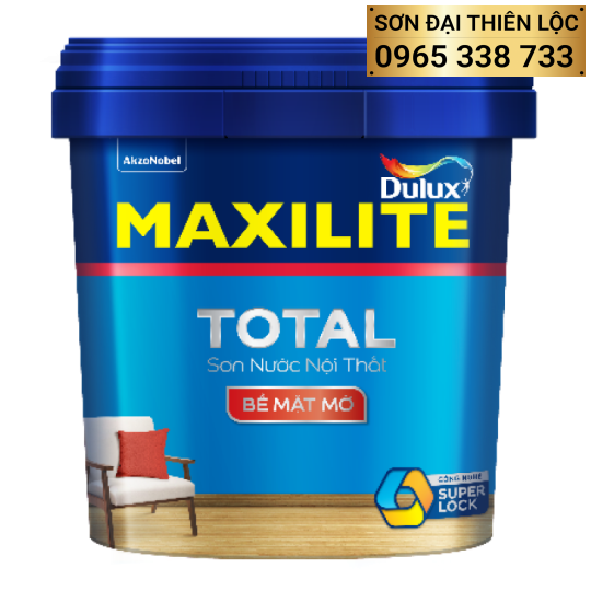 Maxilite Total Bề mặt Bóng Mờ là sơn nước nội thất chất lượng cao với thành phần nhựa gốc Polymer và công nghệ SuperLock giúp màng sơn bám dính chắc chắn vào tường, ngăn ngừa bong tróc hiệu quả và cho màu đẹp lâu hơn với bề mặt láng mịn.