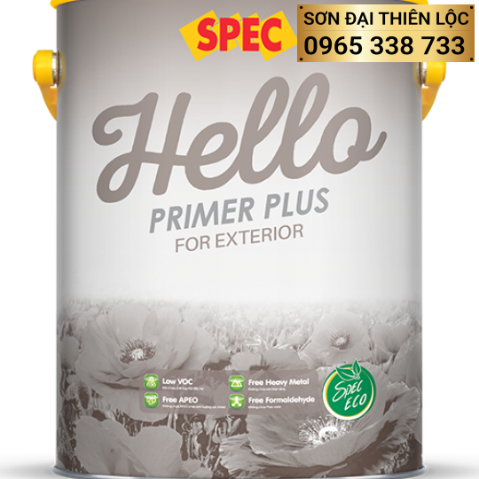 SPEC HELLO PRIMER PLUS FOR EXTERIOR - SƠN LÓT NGOẠI THẤT SIÊU KHÁNG KIỀM VÀ KHÁNG MUỐI là loại sơn lót có khả năng thẩm thấu cao, bám dính tốt lên bề mặt tường xi măng mới, trên bề mặt bột trét hoặc trên bề mặt lớp sơn cũ.